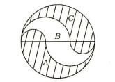 A circle of 3 m radius is divided into three areas by semicircles of radii 1 m and 2 m as shown in the figure above. The ratio of the three areas A, B and C will be
