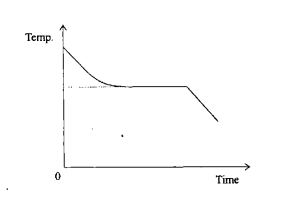 A solid is melted and allowed to cool and solidify again. The temperature is measured at equal intervals of time. The graph below shows the change of temperature with time.