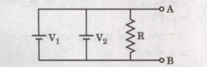(where value of V₂ = 5 V. The internal resistances of both the batteries are 0·1 Ω.)