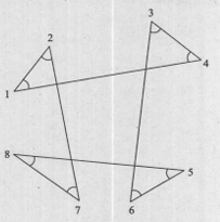 Angles are shown in the given figure. What is value of ∠1 + ∠2 + ∠3 + ∠4 + ∠5 + ∠6 + ∠7 + ∠8?