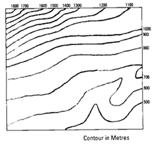 The above contours of an area indicate several relief features. Which one among the following relief features is not depicted here ?
