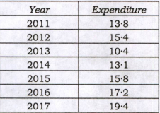 The expenditure (in lakhs of rupees) of a company for the years 2011 to 2017 is asunder :