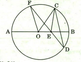 In the figure given below, AB is the diameter of the circle whose centre is at O. Given that ∠ECD = ∠EDC = 32°, then ∠CEF and ∠COF respectively are