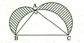 In the figure given below, ABC is a right-angled triangle where ∠A = 90°, AB = p cm and AC = q cm. On the three sides as diameters semicircles are drawn as shown in the figure. The area of the shaded portion, in square cm, is