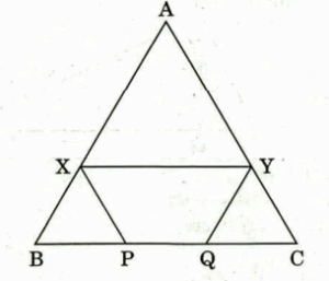 In the figure given below, ABC is an equilateral triangle with each side of length 30 cm. XY is parallel to BC, XP is parallel to AC and YQ is parallel to AB. If XY + XP + YQ is 40 cm, then the value of PQ is