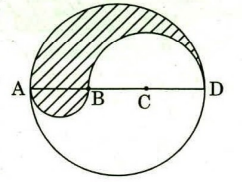 In the figure given below, ABCD is the diameter of a circle of radius 9 cm. The lengths AB, BC and CD are equal. Semicircles are drawn on AB and BD as diameters as shown in the figure. What is the area of the shaded region?