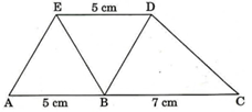 In the figure given below, AC is parallel to ED and AB = DE = 5 cm and BC = 7 cm. What is the area ABDE : area BDE : area BCD equal to?