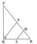 In the figure given below, PQR is a non-isosceles right-angled triangle, right angled at Q. If LM and QT are parallel and QT = PT, then what is ∠RLM equal to?
