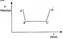 In the given velocity (V) versus time (t) graph, accelerated and decelerated motions are respectively represented by line segments